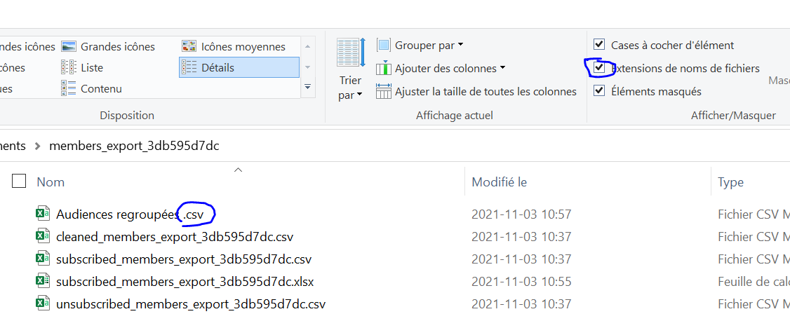 *Procédure pour afficher l’extension si celle-ci n’est pas visible